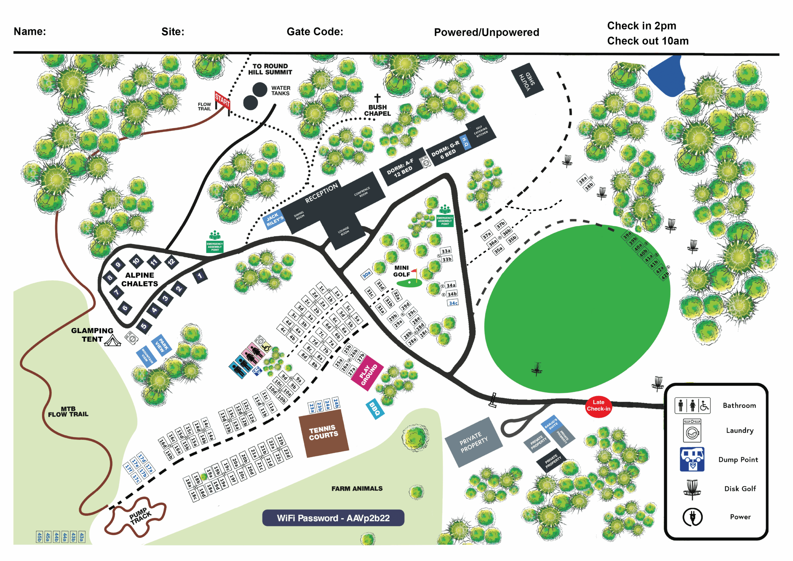 To check in, first, check your email and text message for your unique access code. Next, use the code to open the key box and retrieve your key. Then, make your way to the boom gate to enter the campground. Our office is open Monday to Friday from 9 AM to 5 PM and closed on Saturdays, with after-hours check-in available. On Sundays, the check-in kiosk can be used if needed. If you need assistance at any time, please call (02) 6456-2738.
